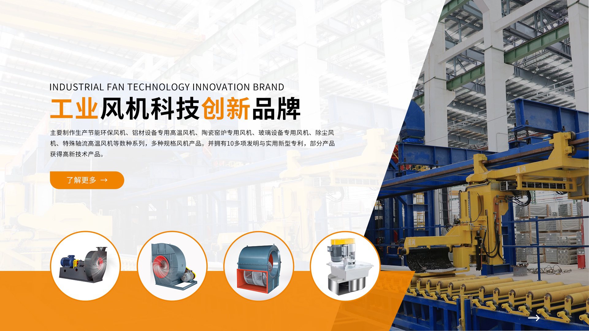 憑借多年的經驗和技術沉淀,風泰品牌在鋁材行業、新能源行業、陶瓷行業、玻璃行業、環保行業等領域取得了良好的應用,已擁有廣泛的知名度和良好的口碑。公司已建立嚴格的質量保證體系,具備領先的風機技術研究和制造實力,不斷吸收創新技術,開發節能、環保、高效的風機新產品。主要制作生產節能鋁材設備專用高溫風機、鋁材行業高溫窯爐風機、噴涂線專用風機、氧化線風機、淬火爐風機、陶瓷窯爐專用風機、玻璃設備專用風機、除塵風機、特殊軸流高溫風機等上千種系列規格產品。并擁有10多項發明與實用新型專利,部分產品獲得高新技術產品。